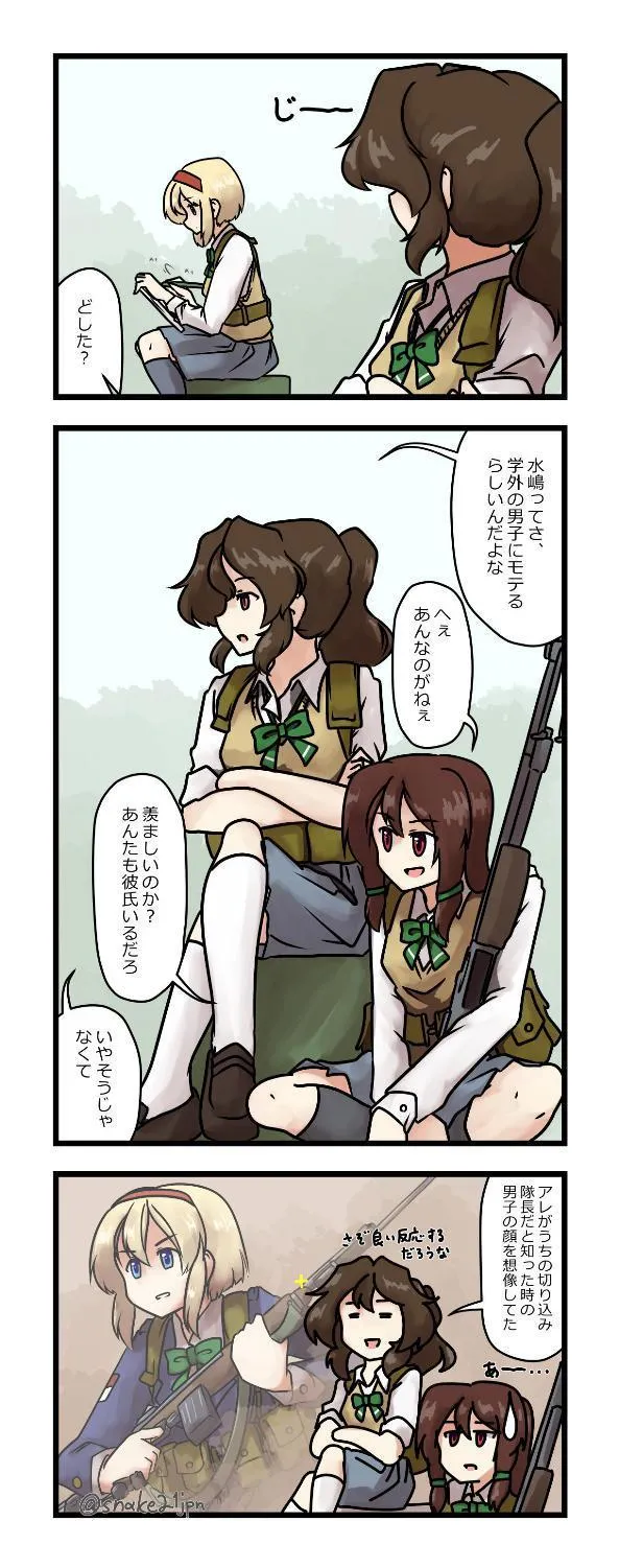 水嶋さんのウワサ 登録タグ 冨士原_しおり 岡田_志保 武装JK 水嶋_早織 月読武装JK '23 Mar/25th 4コマ漫画の練習に落書き。Twitterに限らず、いろんなところで何の説明もなしに蛇家の武装JKさん描いて回ってたりするんだけど、どこで描いても水嶋さんは反応が良くて、人気があるんだろうなって。いつも一人で絵を描いてるおとなしい子というイメージでキャラクターデザインしたんだけど、そんな見た目で誰もが驚くほどの突撃番長だったら面白いかなと。実際Twitterのほうではフォロワーさんに美味しい反応いただきまして。(うれしい… ◀前のエントリーらくがき平野さん'23 Apr/11th次のエントリー▶習作'23 Mar/10th